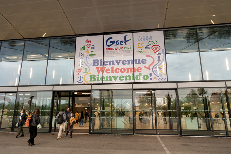 10 800 participants, 109 pays représentés, 169 ateliers, plus de 600 intervenants... le Forum mondial de l’économie sociale et solidaire GSEF1 à Bordeaux du 29 au 31 octobre 2025 a battu tous les records pour sa 7e édition. Une satisfaction pour Timothée Duverger, chargé de présider le comité scientifique d’un événement d’envergure planétaire composé d’acteurs et de chercheurs nationaux et internationaux. « L’objectif était de construire un programme équilibré dans l’origine des expressions et dans les sujets proposés sur la base de la thématique qui avait été choisie ». Laquelle portait sur « l’ESS, une condition pour la transformation juste vers des territoires résilients et le bien-être de leurs habitants ». Un sujet de choix pour ce docteur en histoire et enseignant à Sciences Po Bordeaux, reconnu comme l’un des spécialistes français de l’ESS, et fervent défenseur du concept de Responsabilité Territoriale des Entreprises (RTE). Une expertise qu’il transmet aux étudiants de l’institut puisqu’il est responsable de son master Économie sociale et solidaire et innovation sociale (ESSIS). Une de ses étudiantes de M2 - Jeanne Morel - a d’ailleurs brillé lors du GESF en tant que coordinatrice du comité scientifique. Recrutée par la manifestation en qualité d’alternante, elle en a été l’une des chevilles ouvrières (lire son interview plus bas). L’occasion pour elle de livrer son sentiment sur son cursus et ce qu’elle en retire.