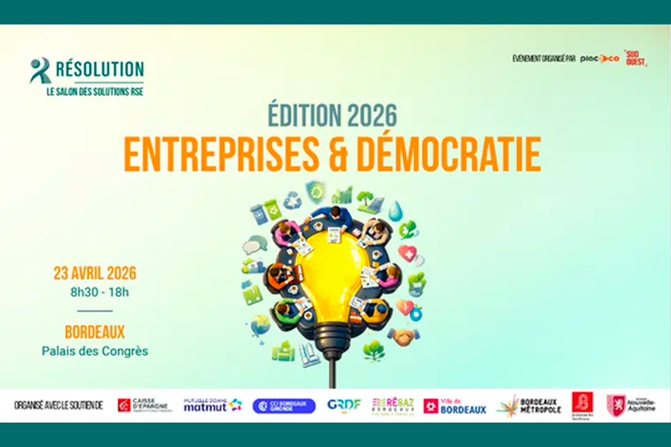 Sciences Po Bordeaux est partenaire de la 4e édition du salon des solutions RSE en Gironde. Rendez-vous le jeudi 23 avril 2026 au Palais des congrès de Bordeaux, pour tout comprendre sur la responsabilité sociétale des entreprises et repartir avec des solutions concrètes.